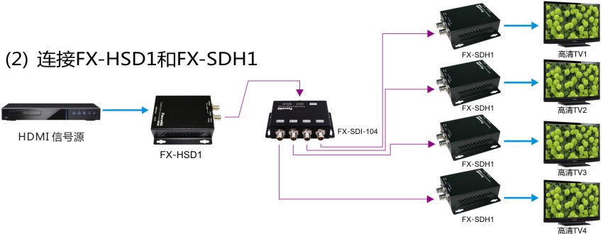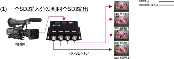 1) 分配一路 SDI信號(hào)輸入同時(shí)輸出四路 SDI信號(hào)